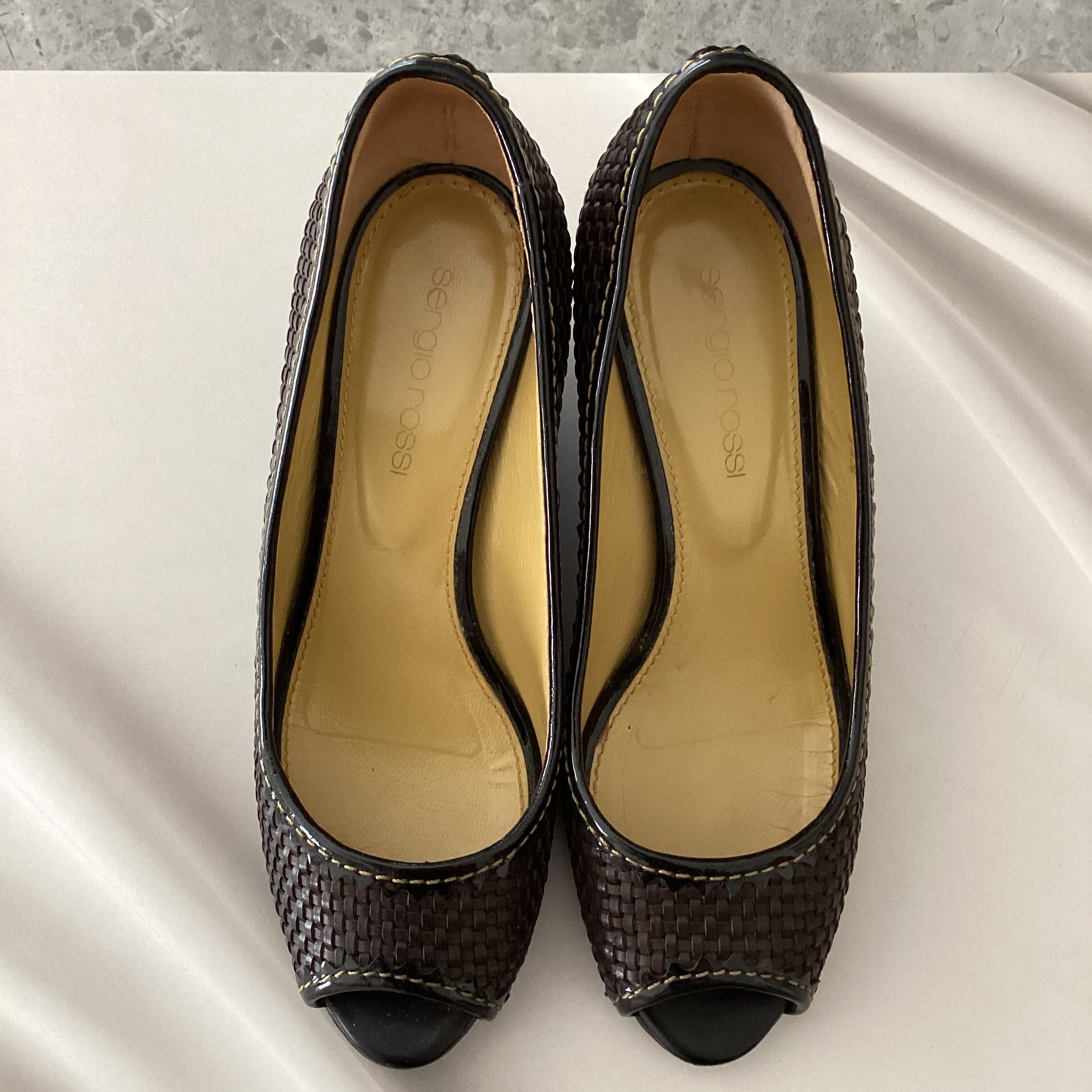 ■ セルジオロッシ オープントゥウェッジヒールパンプス ダークブラウン ■
