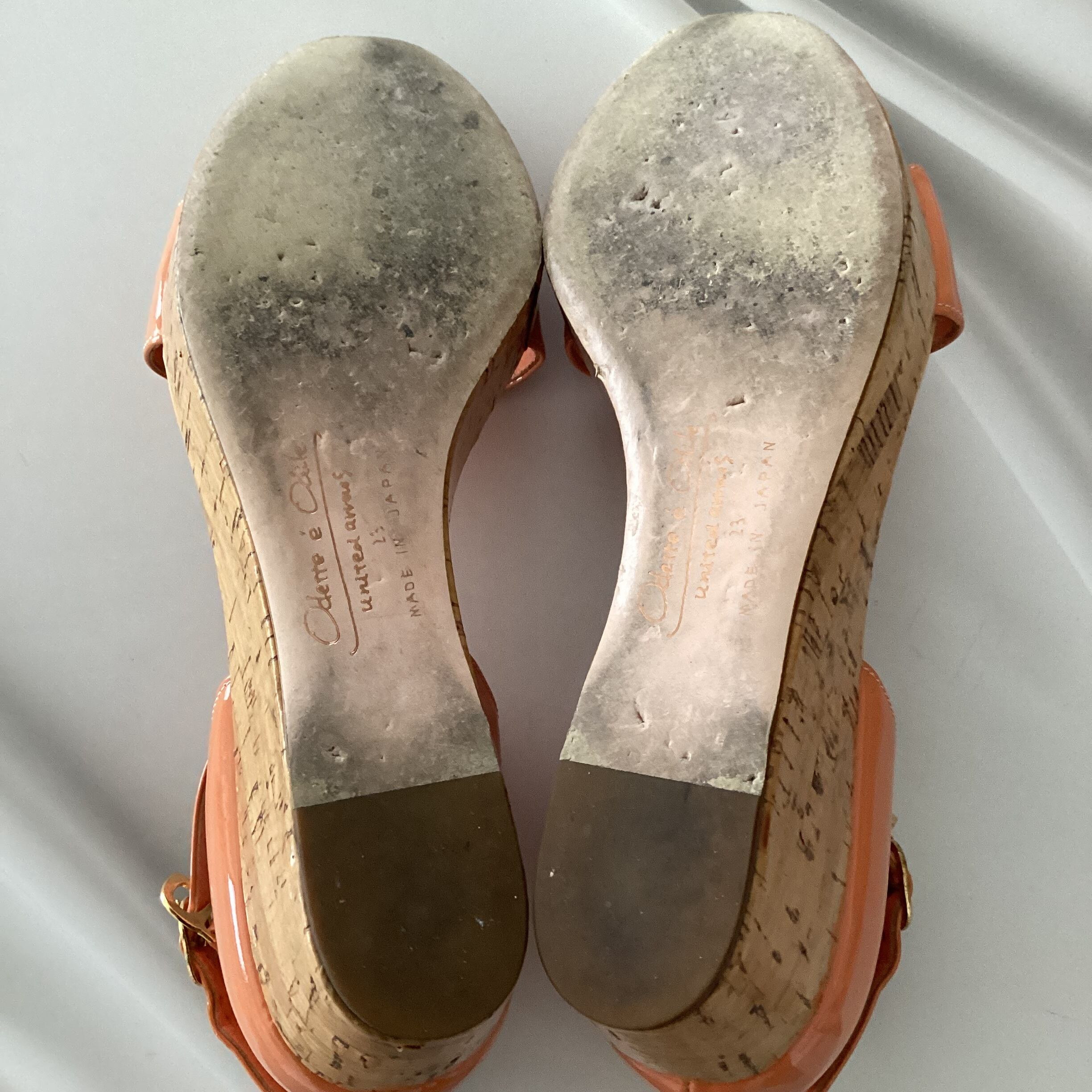 ■ オデットエオディール オレンジ エナメル ウェッジサンダル ■